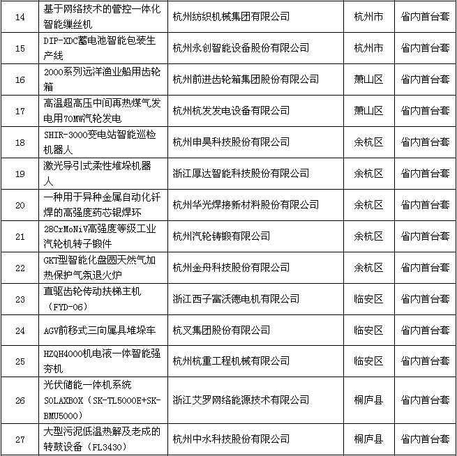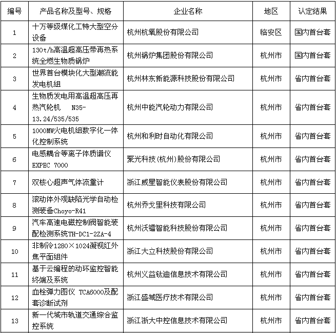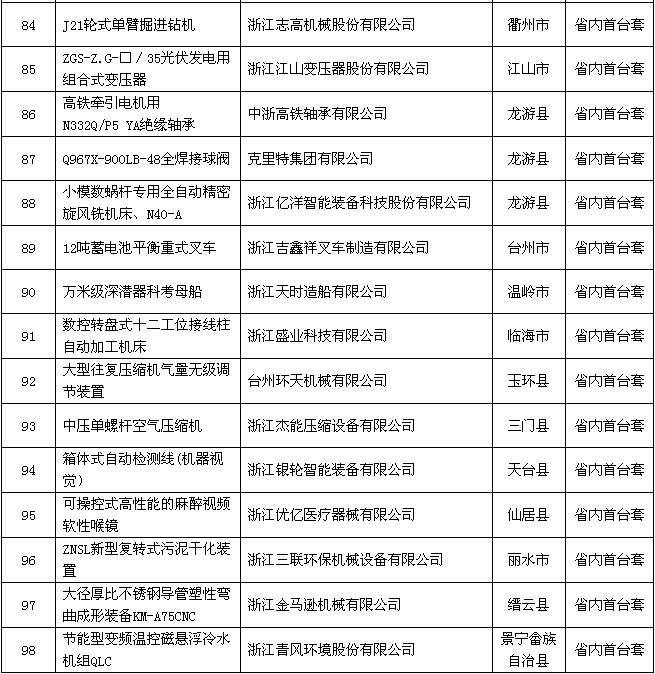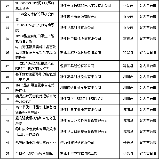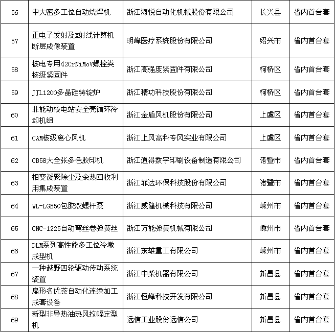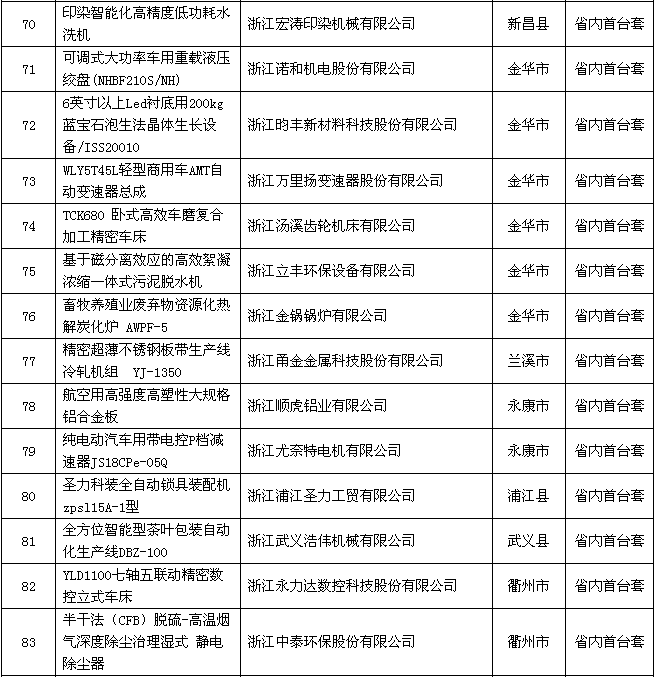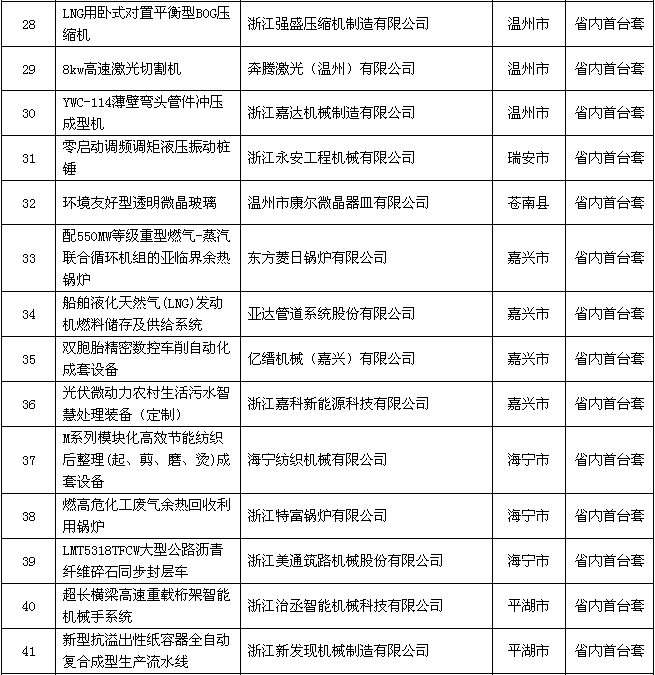 附件:2018年度浙江省裝備制造業(yè)重點領(lǐng)域首臺(套)產(chǎn)品認(rèn)定結(jié)果公示名單