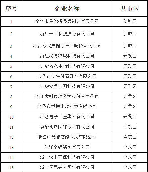 根據(jù)《金華市專利示范企業(yè)認(rèn)定與管理辦法》(金政發(fā)〔2004〕132號(hào),金政發(fā)〔2008〕70號(hào)修改)文件精神,在各縣(市、區(qū))科技管理部門推薦的基礎(chǔ)上,經(jīng)材料審查、專家評(píng)審,擬認(rèn)定金華市希能折疊桌制造有限公司等60家企業(yè)為2017年金華市專利示范企業(yè),現(xiàn)予公示,接受社會(huì)監(jiān)督,公示期從2017年11月16日至22日止。如有異議,請(qǐng)來人來電反映。