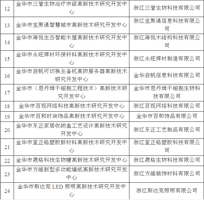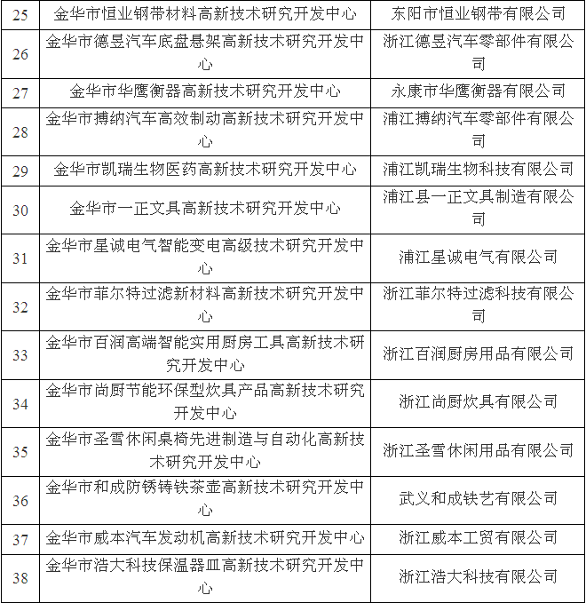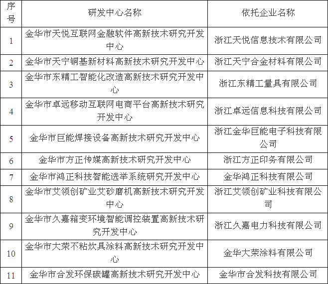 金華市級(jí)高新技術(shù)研究開(kāi)發(fā)中心名單