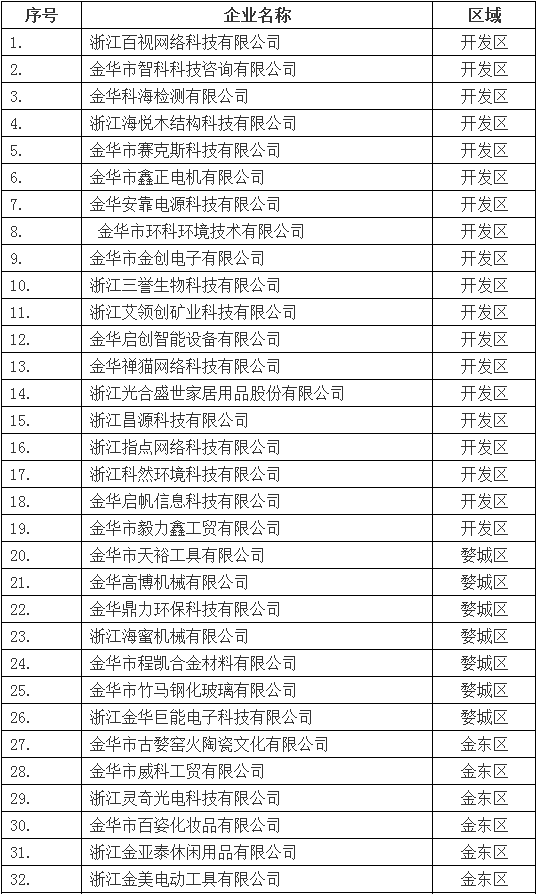 2018年浙江省高成長科技型中小企業(yè)推薦匯總表