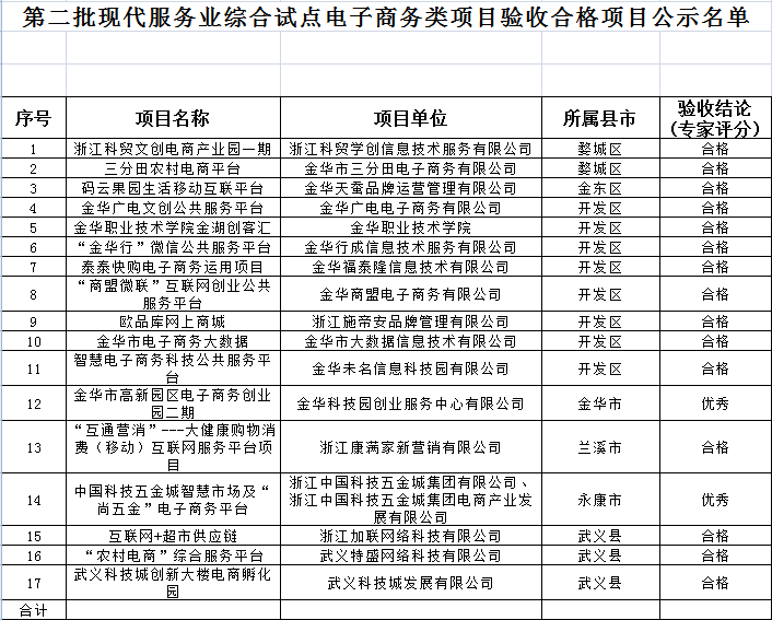 第二批現(xiàn)代服務(wù)業(yè)綜合試點(diǎn)電子商務(wù)類項(xiàng)目驗(yàn)收合格項(xiàng)目公示名單