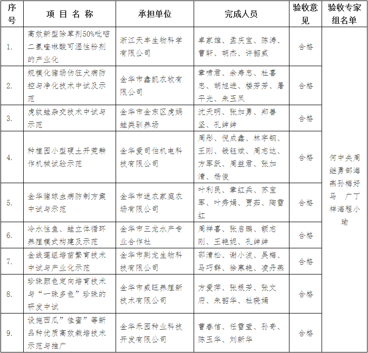 金華市級農(nóng)業(yè)科技成果轉(zhuǎn)化項目驗收結(jié)果公示清單