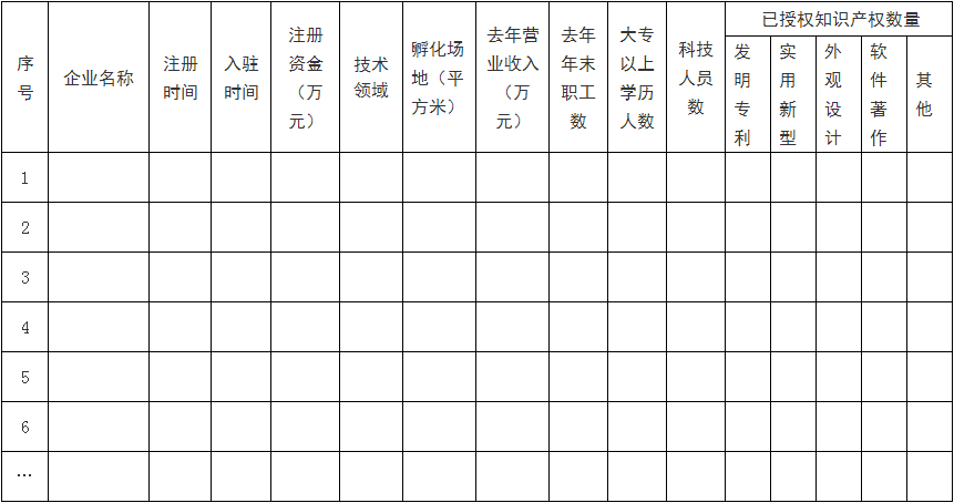 (六)在孵企業(yè)情況(在孵企業(yè)情況匯總表、在孵企業(yè)與孵化器簽署的孵化服務(wù)協(xié)議或入駐協(xié)議);