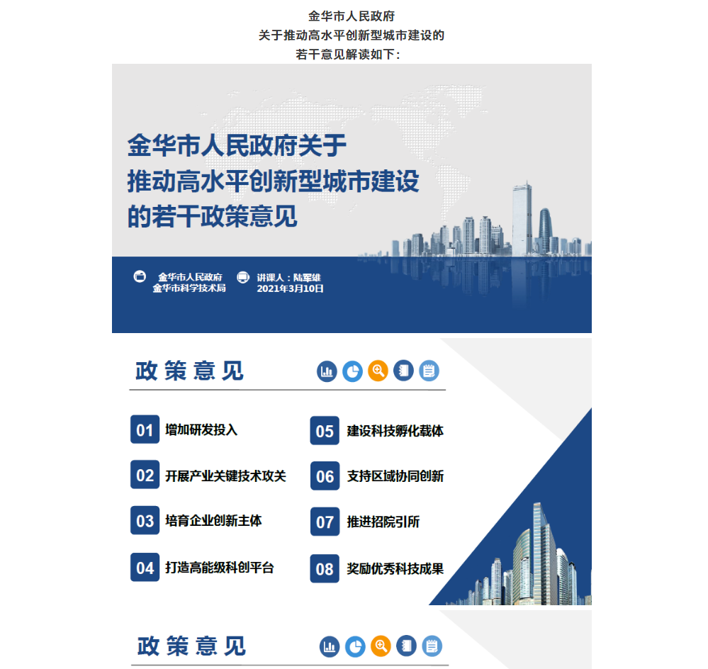 金華市人民政府關于推動高水平創(chuàng)新型城市建設的若干意見