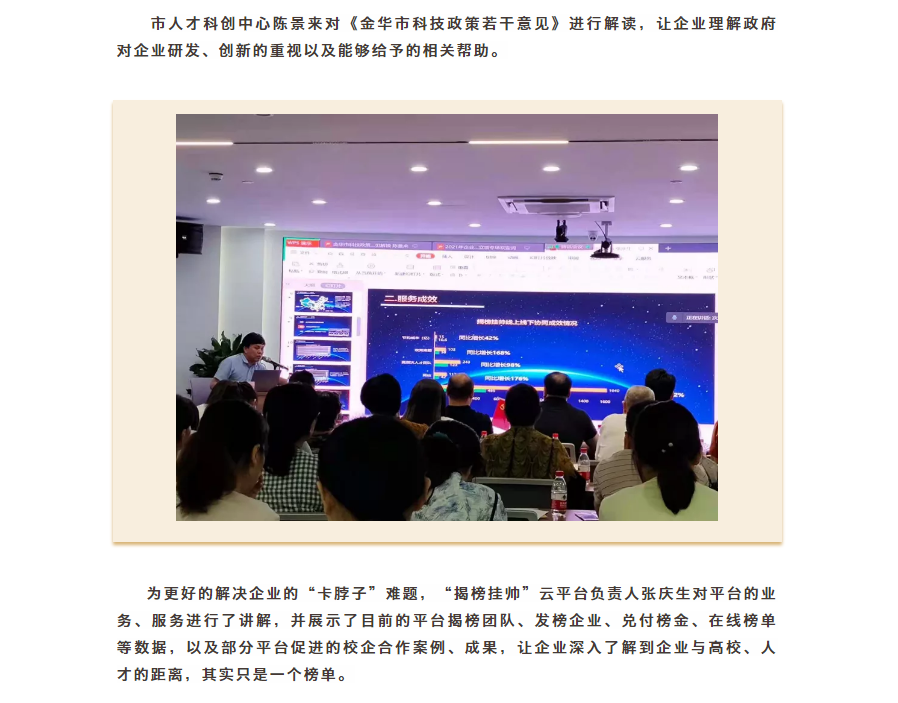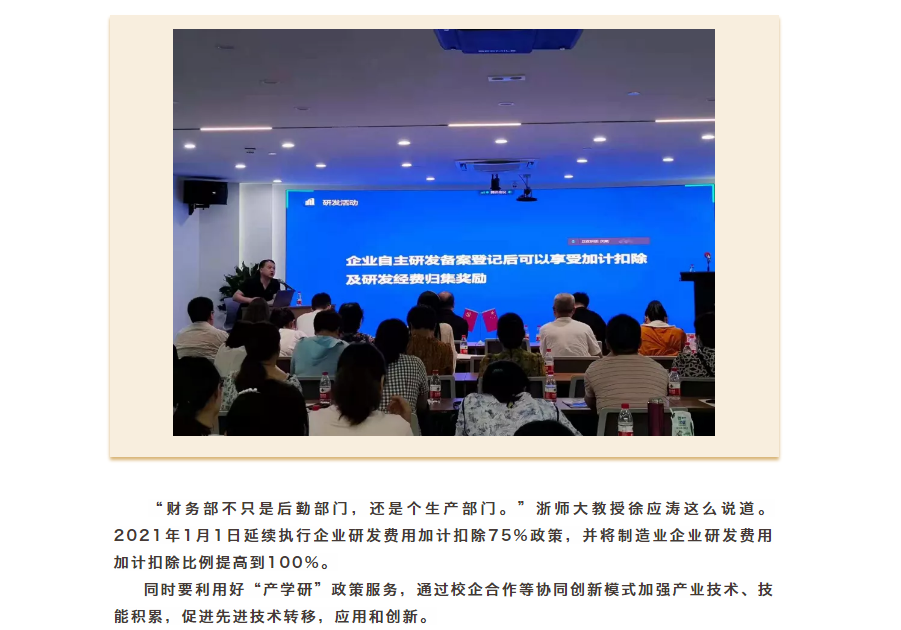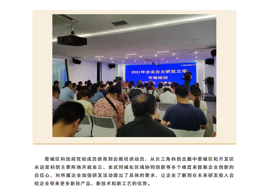 為進(jìn)一步加強(qiáng)企業(yè)研發(fā)項(xiàng)目登記管理,幫助企業(yè)掌握自主研發(fā)立項(xiàng)的思路、方法和系統(tǒng)操作,引導(dǎo)創(chuàng)新主體加大R&D研發(fā)投入,解讀企業(yè)研發(fā)經(jīng)費(fèi)加計(jì)扣除等科技政策。6月21日,在市科技局的指導(dǎo)下,市人才科創(chuàng)中心聯(lián)合婺城區(qū)和蘭溪市,組織2021年企業(yè)自主研發(fā)立項(xiàng)線上線下專(zhuān)場(chǎng)培訓(xùn)會(huì)在浙中科技大市場(chǎng)暨“揭榜掛帥”服務(wù)中心順利召開(kāi)。此次參加線上、線下培訓(xùn)人員共計(jì)160人左右。浙中科技大市場(chǎng)和金華市高新技術(shù)企業(yè)協(xié)會(huì)具體承辦。