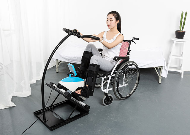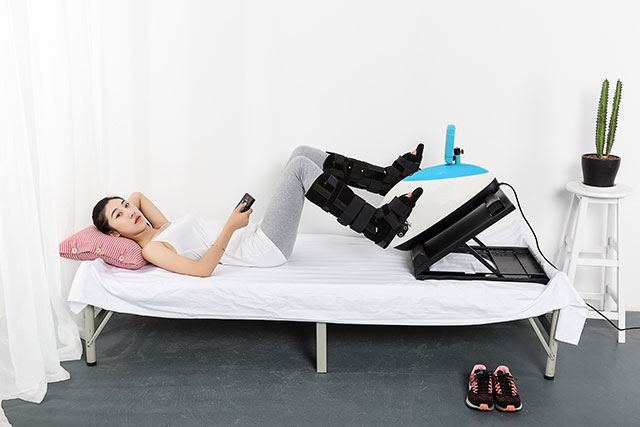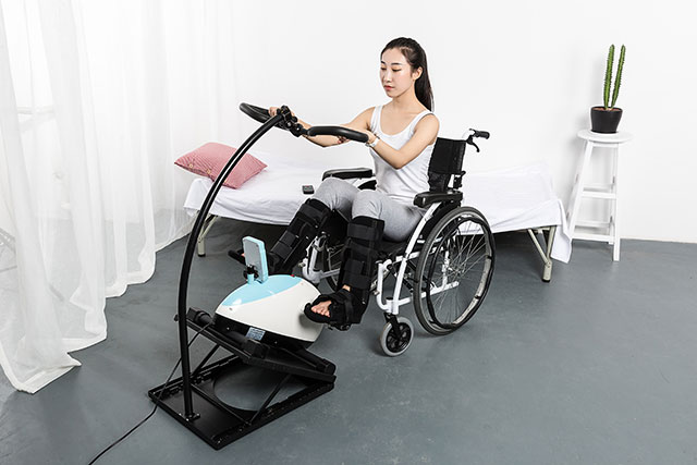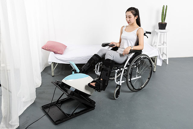 智能下肢康復(fù)器材:智能下肢康復(fù)訓(xùn)練機(jī), 具有患者從完全被動(dòng)訓(xùn)練階段到主動(dòng)和被動(dòng)訓(xùn)練相交叉的助力訓(xùn)練階段到完全的主動(dòng)訓(xùn)練階段到初期主動(dòng)力量訓(xùn)練階段的患者康復(fù)過程。