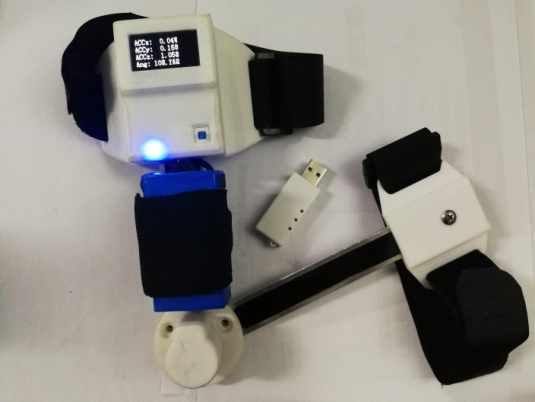 本裝置是基于加速度傳感器和角度傳感器的痙攣狀態(tài)評(píng)估,可實(shí)時(shí)顯示小臂(小腿)的X/Y/Z三軸加速度信號(hào)和肘關(guān)節(jié)(膝關(guān)節(jié))的角度信號(hào),并通過(guò)藍(lán)牙無(wú)線傳輸數(shù)據(jù);谌梭w痙攣時(shí)的加速度信號(hào)和角度信號(hào)的特征,求出痙攣時(shí)的牽張反射閾值,實(shí)現(xiàn)痙攣狀態(tài)等級(jí)的定量評(píng)定。本裝置外形美觀,簡(jiǎn)潔實(shí)用,便攜,易于臨床推廣